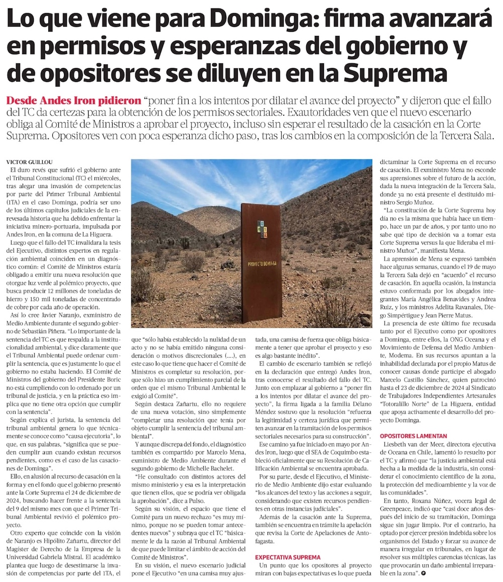 Fallo del TC allana camino para Dominga y empresa iniciará en julio trámite clave para construcción del proyecto - (Diario Financiero)
