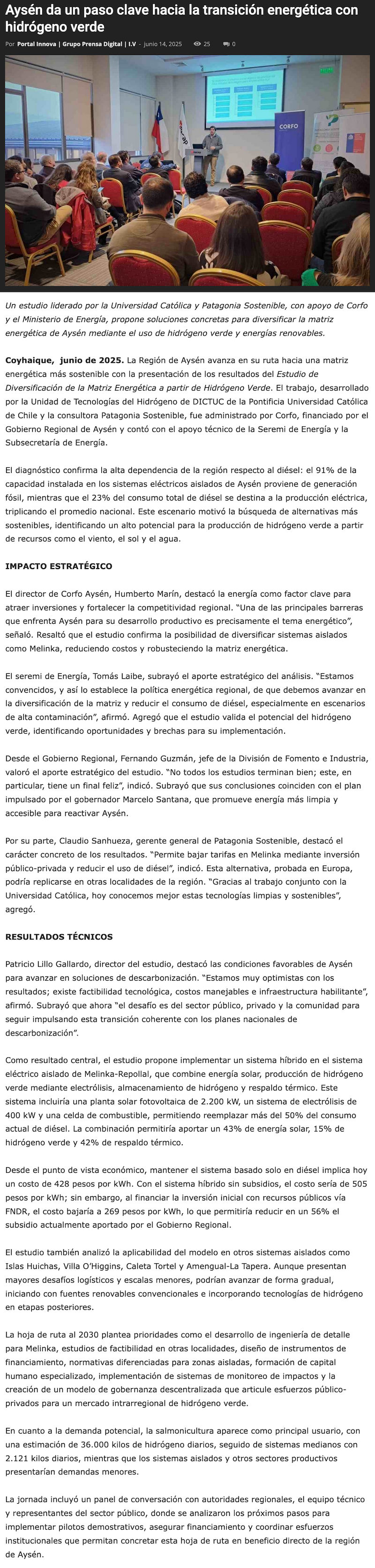Aysén apuesta por el hidrógeno verde para dejar atrás los combustibles fósiles en la generación eléctrica - (radiosantamaria.cl)