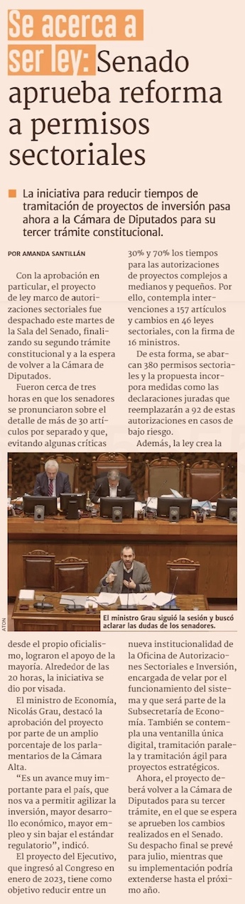 Reforma sobre “permisología” avanza a la Cámara de Diputados - (El Mercurio de Santiago)