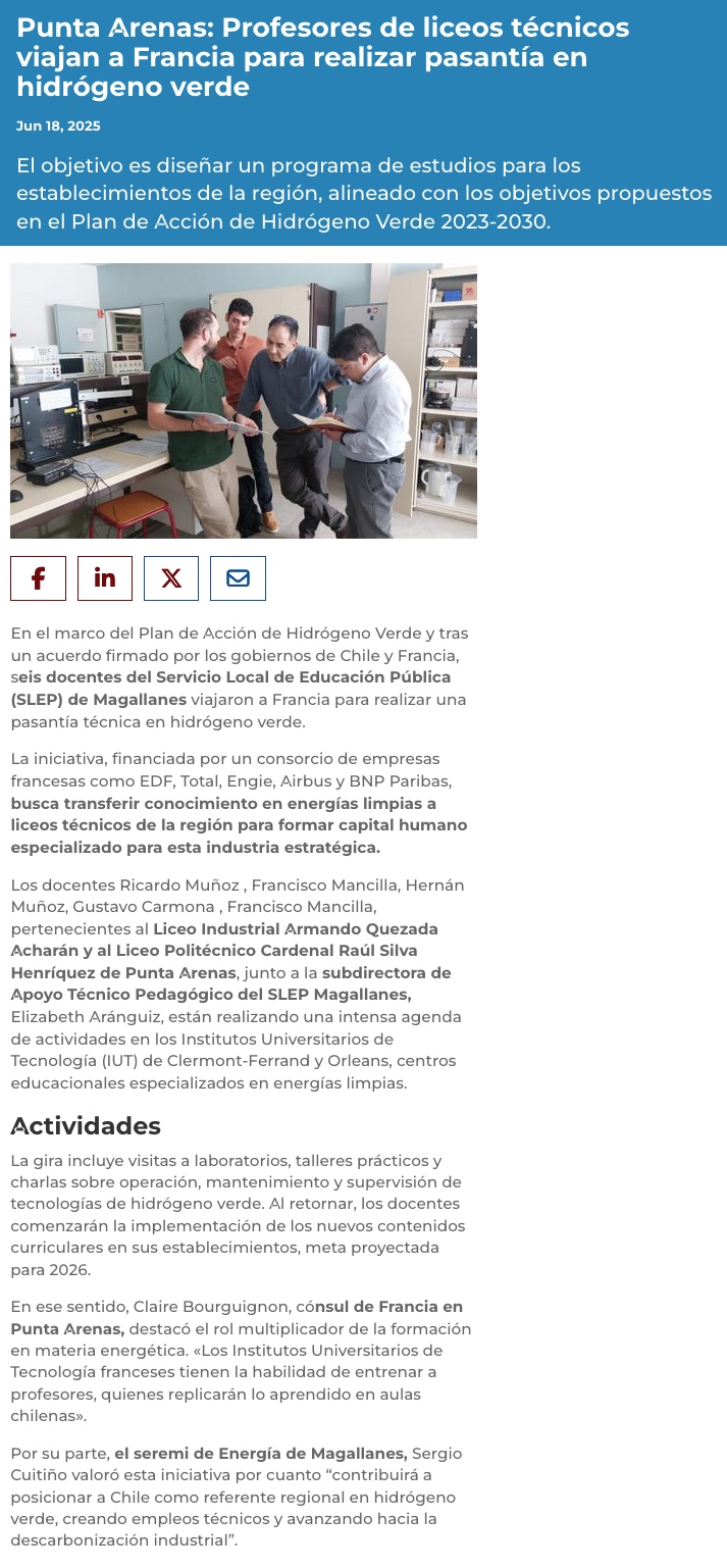 Docentes de Magallanes se capacitan en Francia para formar técnicos en hidrógeno verde - (reporteminero)