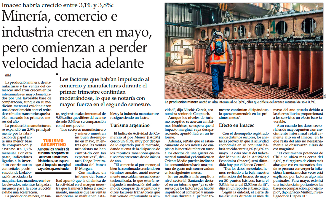 Tras cifras del INE, pronósticos del mercado para la actividad de mayo incluso supera el 4% - (Diario Financiero)