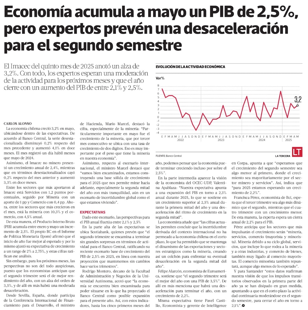 Actividad económica pierde impulso en mayo y se contrae inesperadamente en su medición frente al mes anterior - (El Mercurio de Santiago)