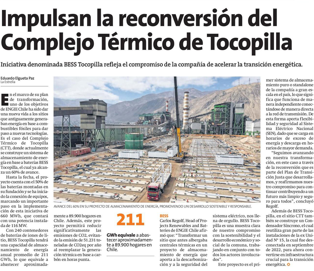 Proyecto de almacenamiento del Complejo Térmico de Tocopilla suma 60% de avance - (El Mercurio de Antofagasta)