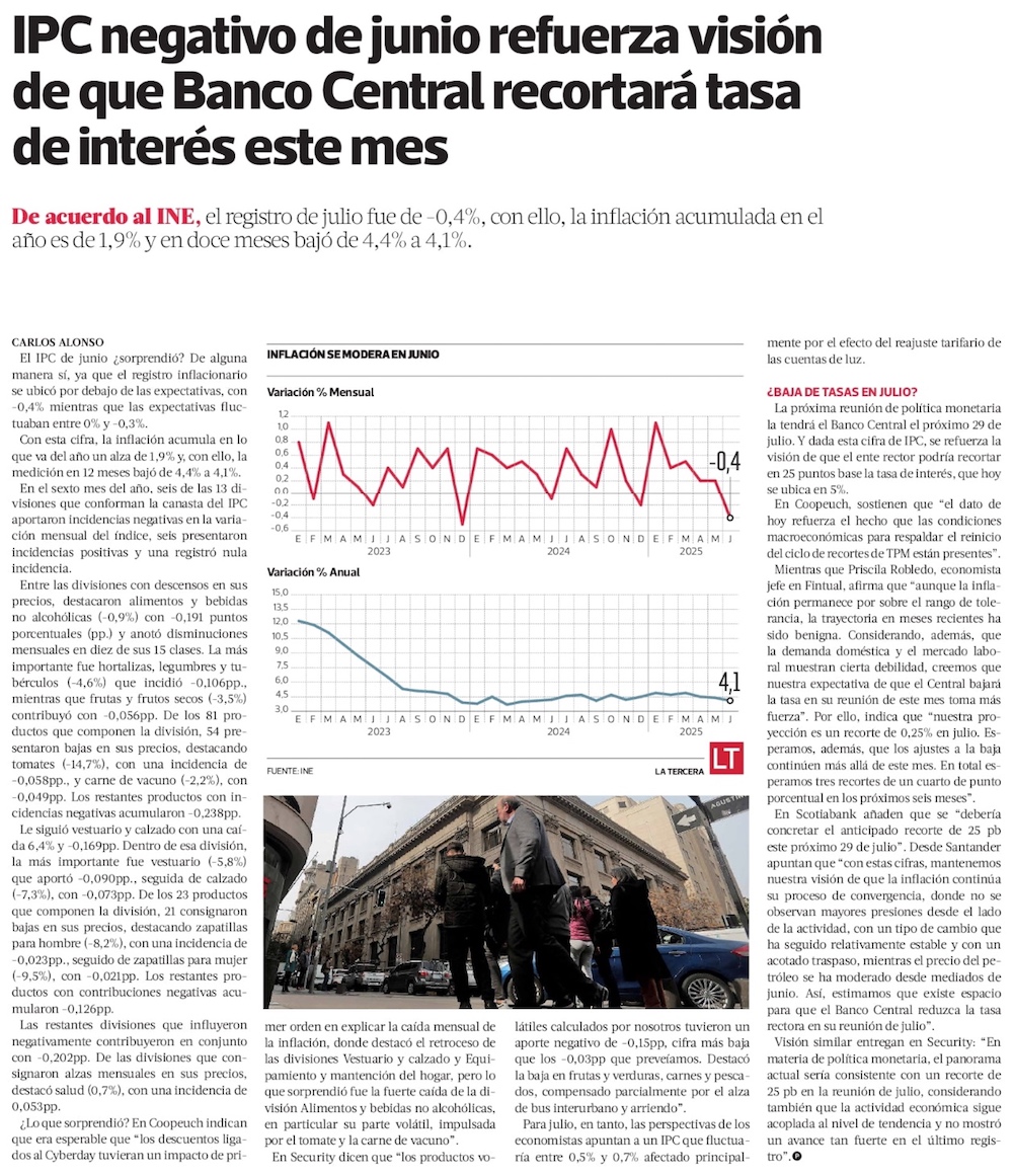 Seis claves tras sorpresivo IPC de junio, que registra mayor caída en un año y medio - (El Mercurio de Santiago)