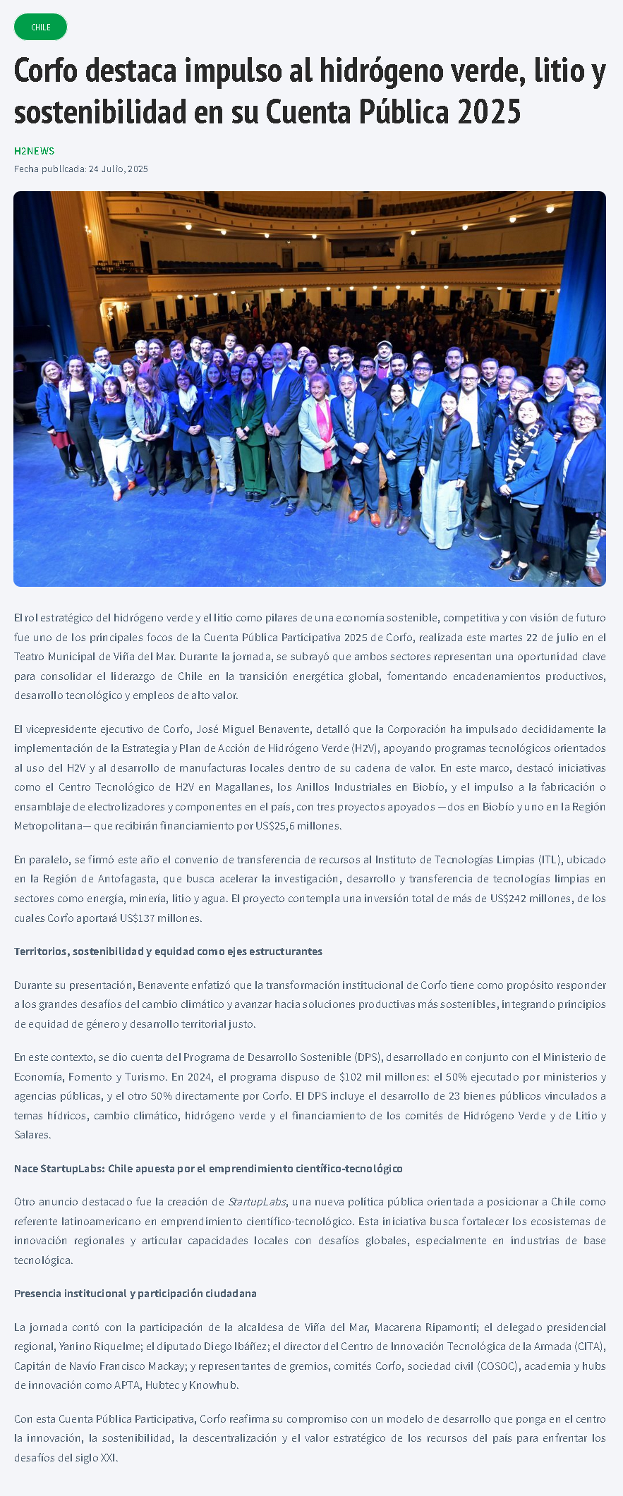 Corfo destaca apuesta por el litio y el hidrógeno verde como ejes estratégicos para la sostenibilidad - (reporteminero)