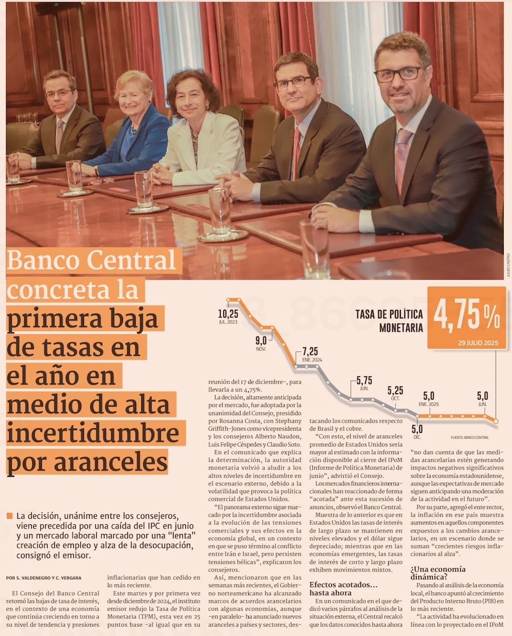 Banco Central reactiva proceso de baja de la tasa de interés: realiza primer recorte desde diciembre y la lleva a 4,75% - (Pulso)