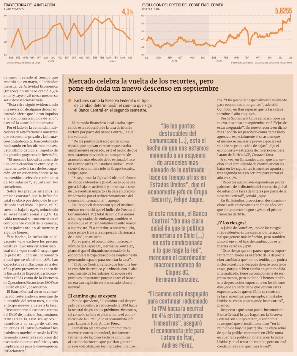 B. Central recorta tasa de interés y el nivel podría bajar del 4,5% hacia fines de año - (El Mercurio de Santiago)