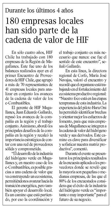 180 empresas magallánicas han sido parte de la cadena de valor de HIF - (radiopolar.com)