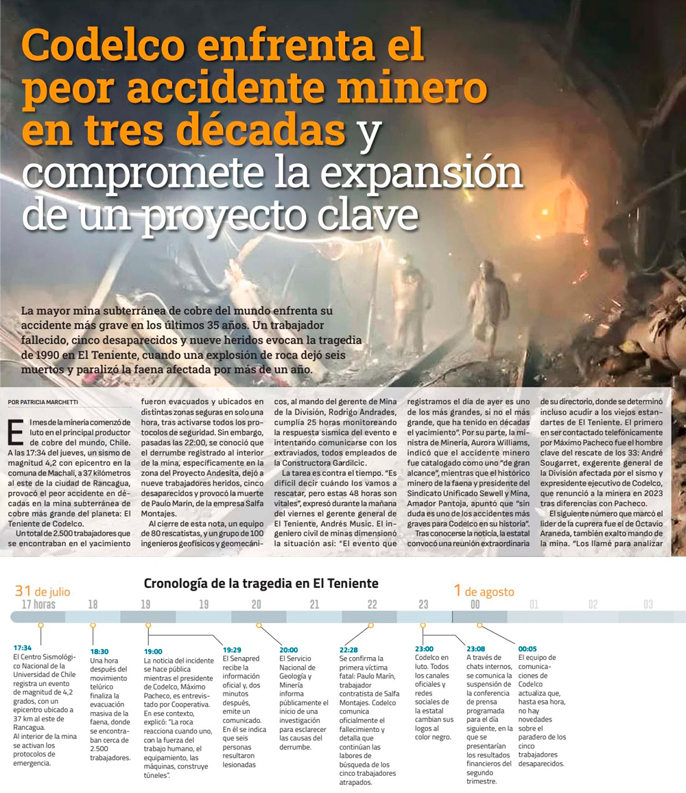 Codelco anuncia auditoría internacional para determinar “qué hicimos mal” en El Teniente - (El Mercurio de Santiago)