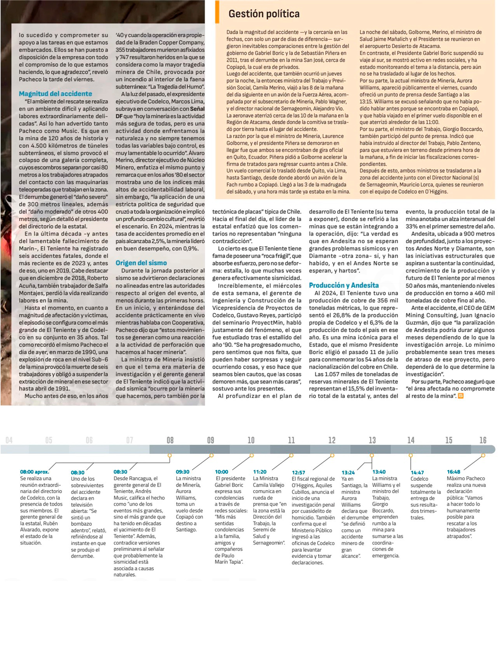 Codelco anuncia auditoría internacional para determinar “qué hicimos mal” en El Teniente - (El Mercurio de Santiago)