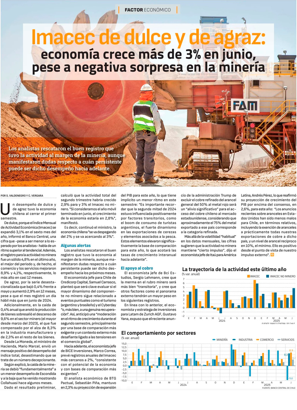 Expansión de la economía decepciona en junio y anticipa una moderación en el segundo semestre - (El Mercurio de Santiago)