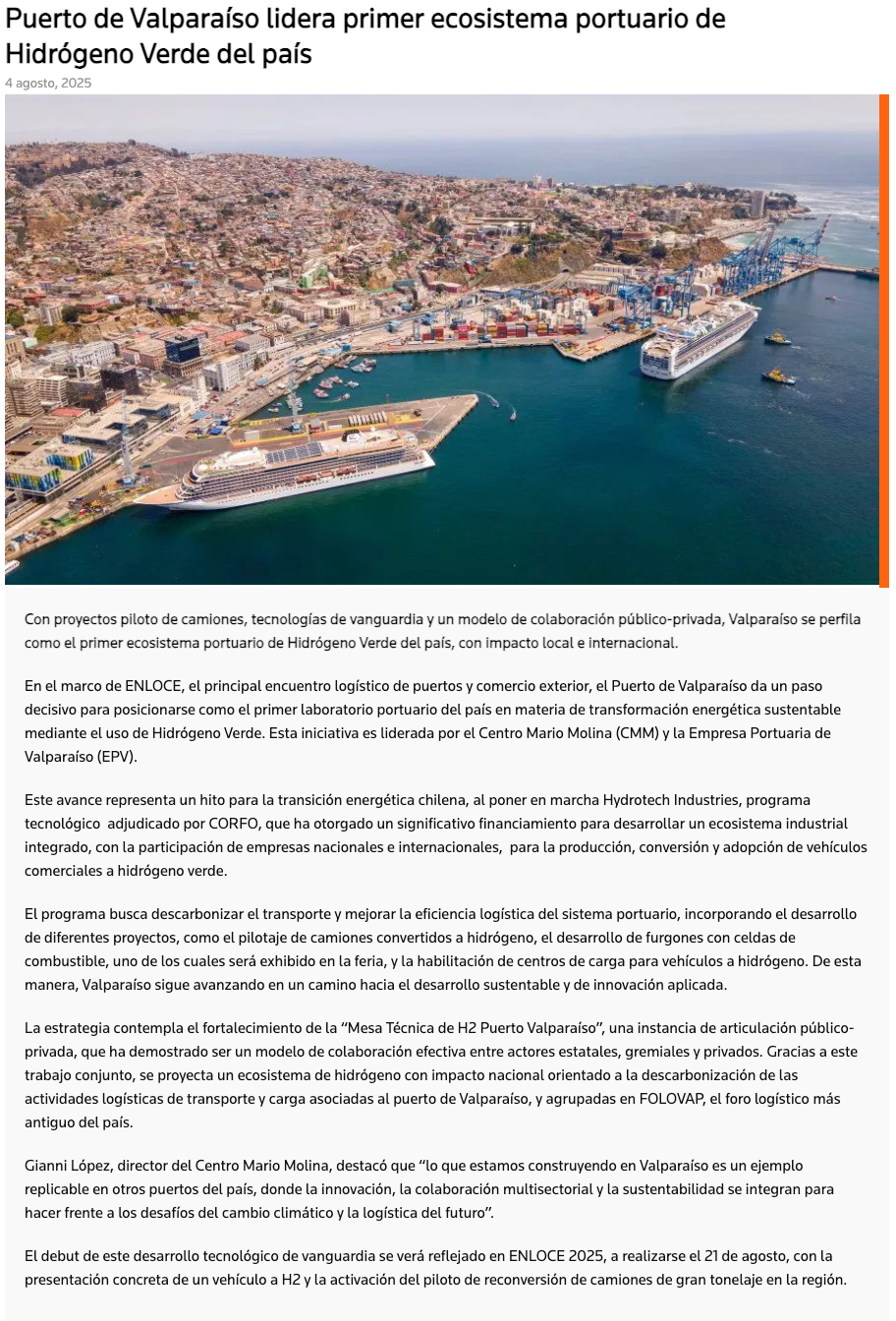 Puerto de Valparaíso lidera primer ecosistema portuario de hidrógeno verde del país - (radiopolar.com)