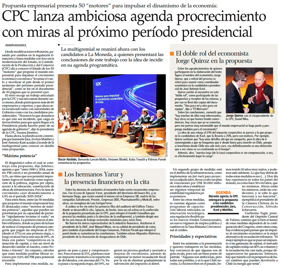 La fórmula de la CPC para reactivar la economía en los primeros tres meses del próximo Gobierno - (Diario Financiero)