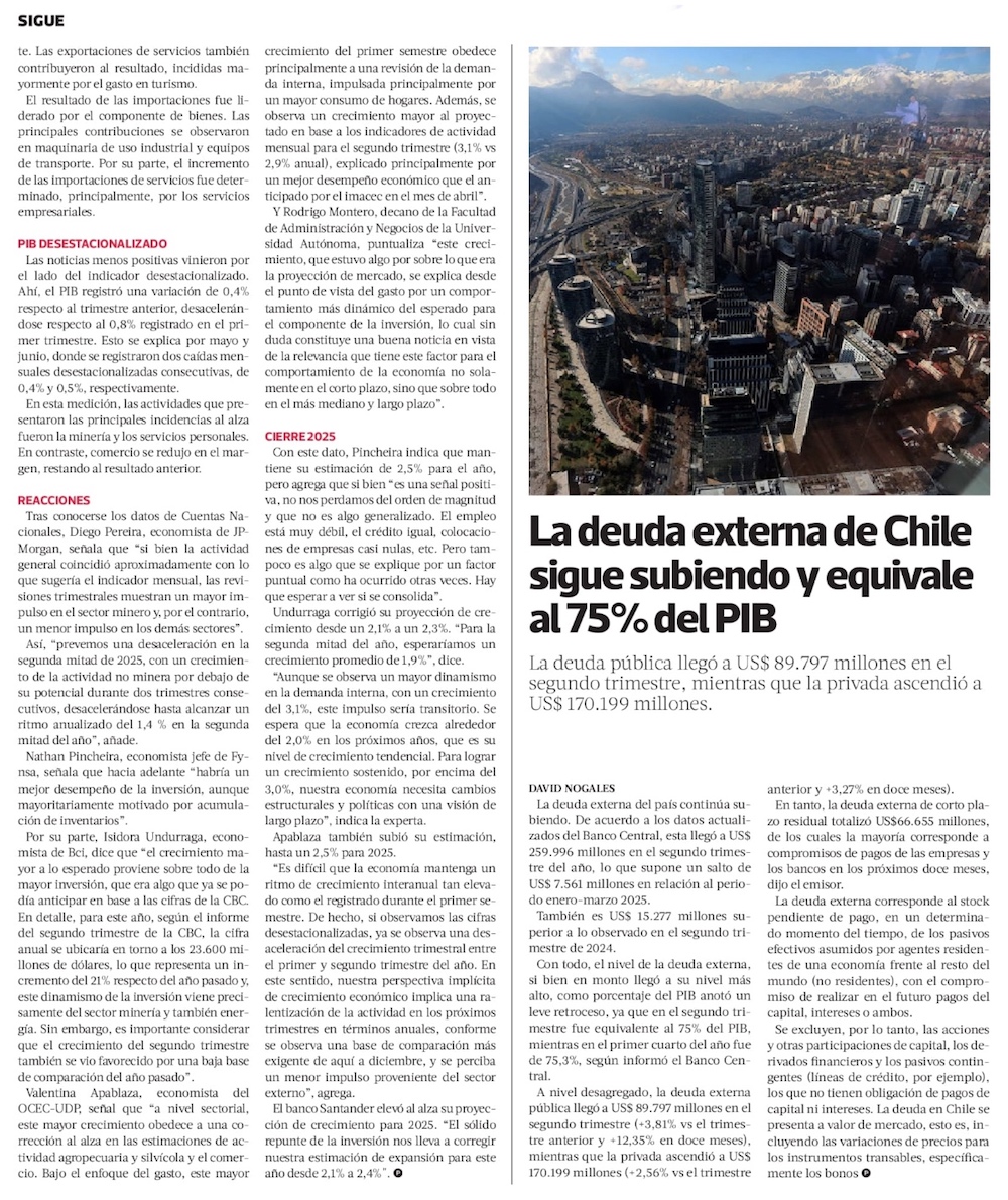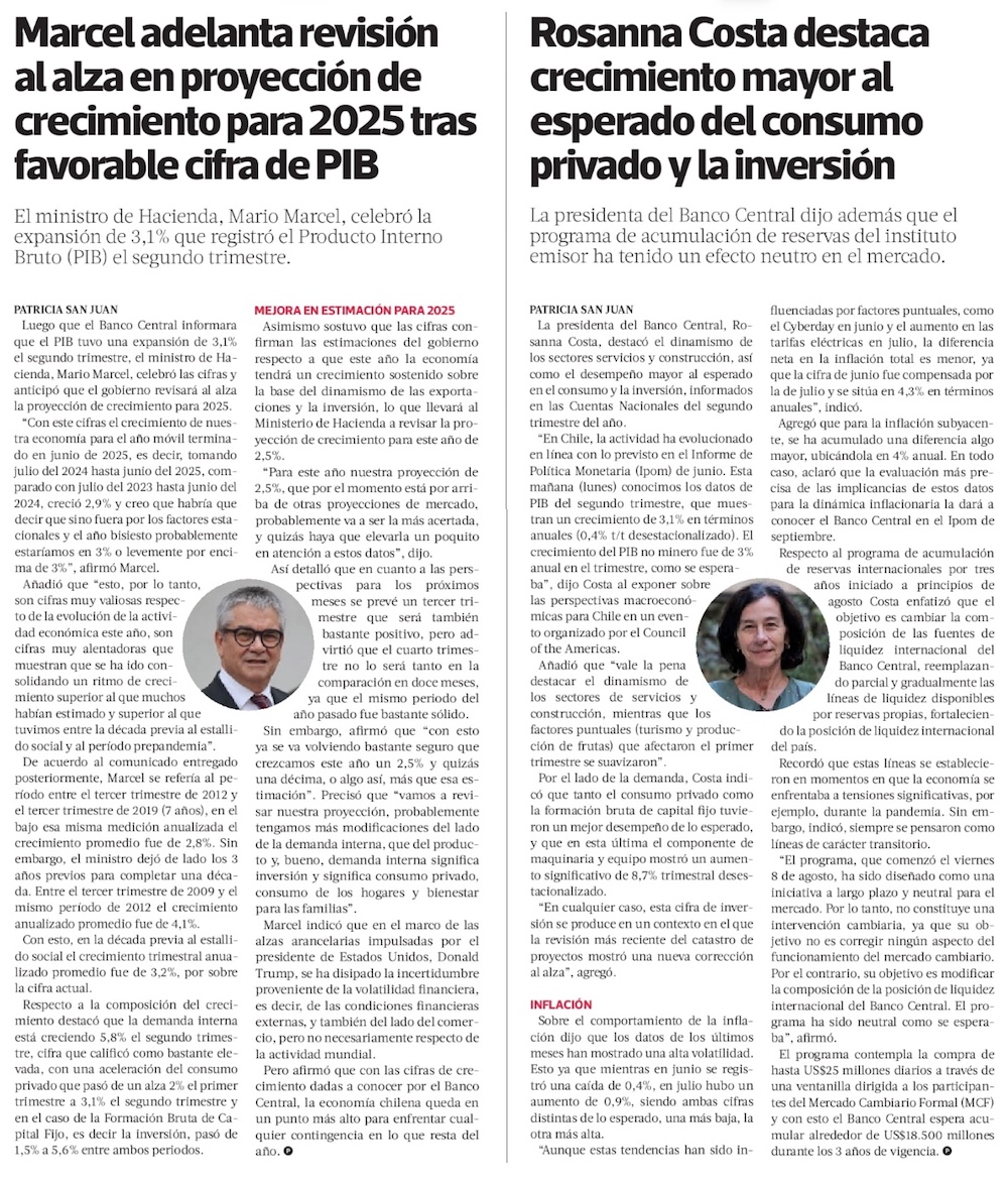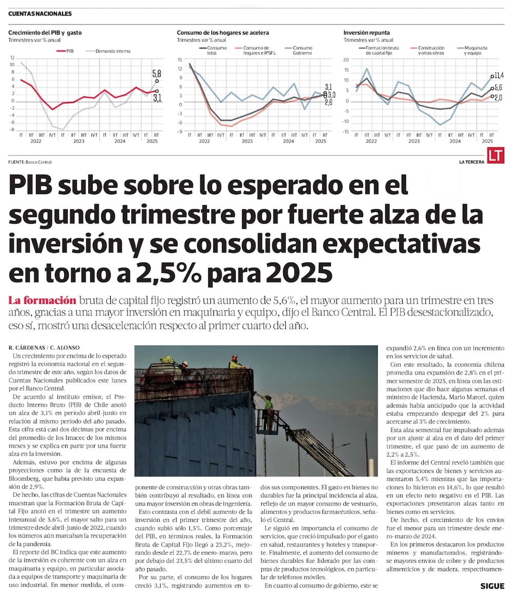 PIB supera las expectativas en el II trimestre y mercado se entusiasma con un crecimiento más cercano a 2,5% este año - (Diario Financiero)