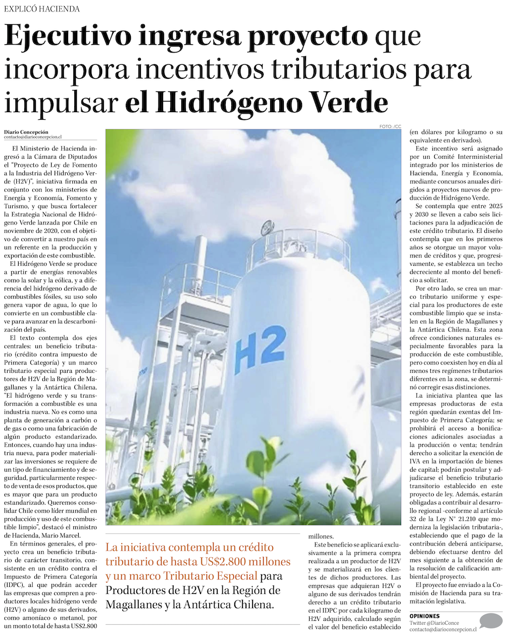 Gobierno ingresa al Congreso proyecto que incorpora incentivos tributarios para impulsar el hidrógeno verde - (puranoticia.cl)