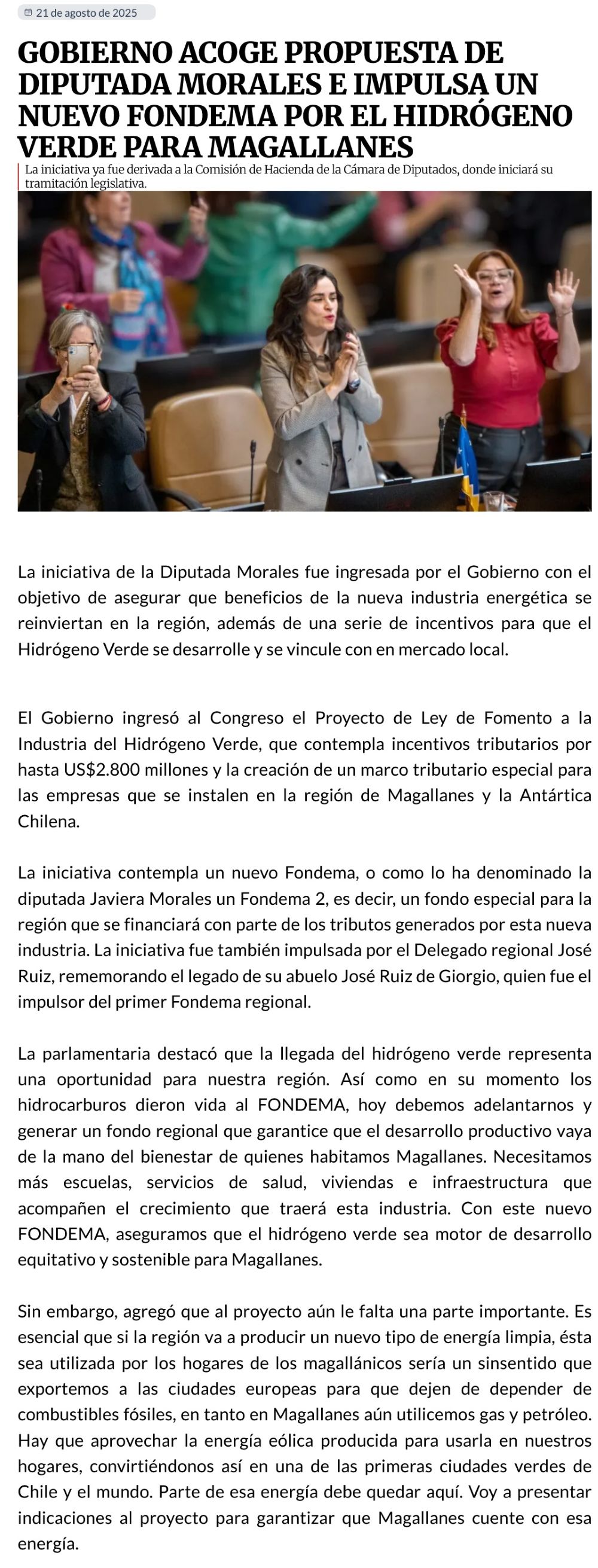 Gobierno ingresa proyecto con incentivos tributarios para impulsar el Hidrógeno Verde - (maulehoy.cl)