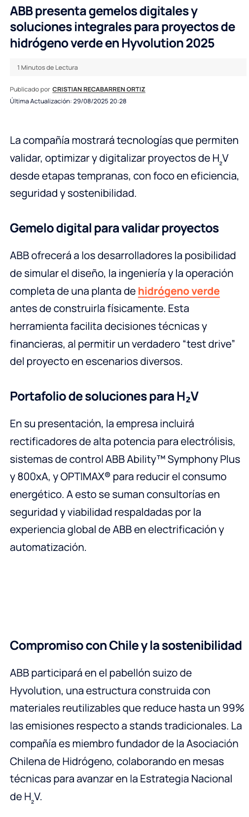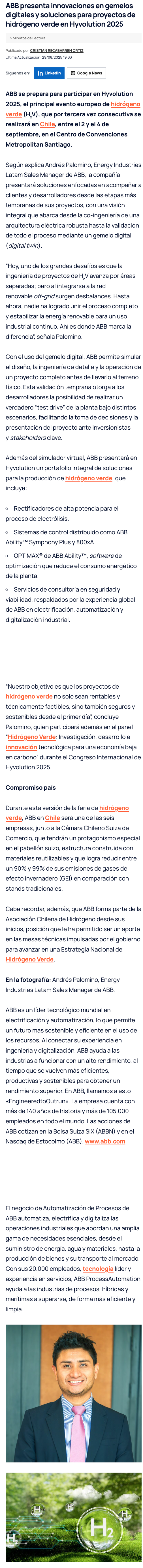 ABB presenta innovaciones en gemelos digitales y soluciones para proyectos de hidrógeno verde en Hyvolution 2025 - (portalminero)