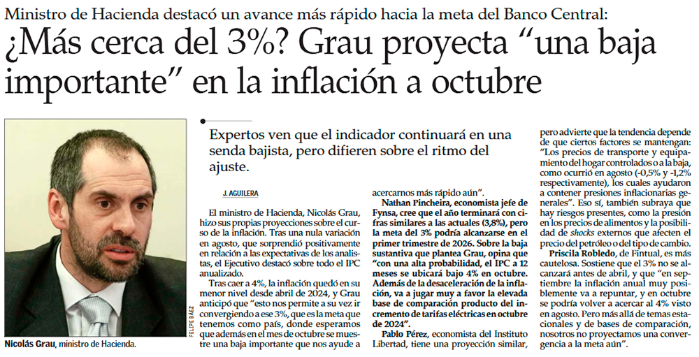 ¿Cierre de año bajo el 4%? Mercado celebra el plano IPC de agosto, pero descarta una baja de tasa este martes - (Diario Financiero)