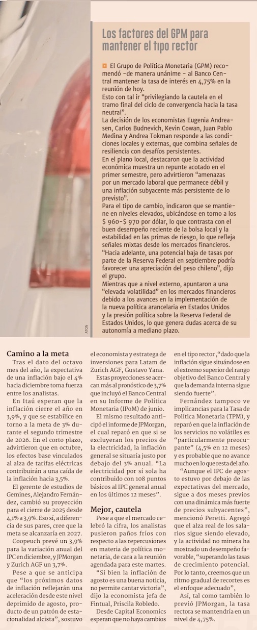 Agosto da un alivio inflacionario y el Banco Central prepara el camino para futuros recortes de tasa - (El Mercurio de Santiago)