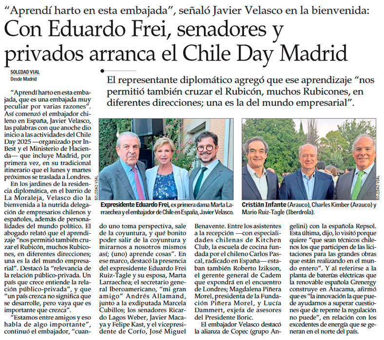 Chile Day debuta en Madrid con una concurrida recepción en casa del embajador Velasco - (Diario Financiero)