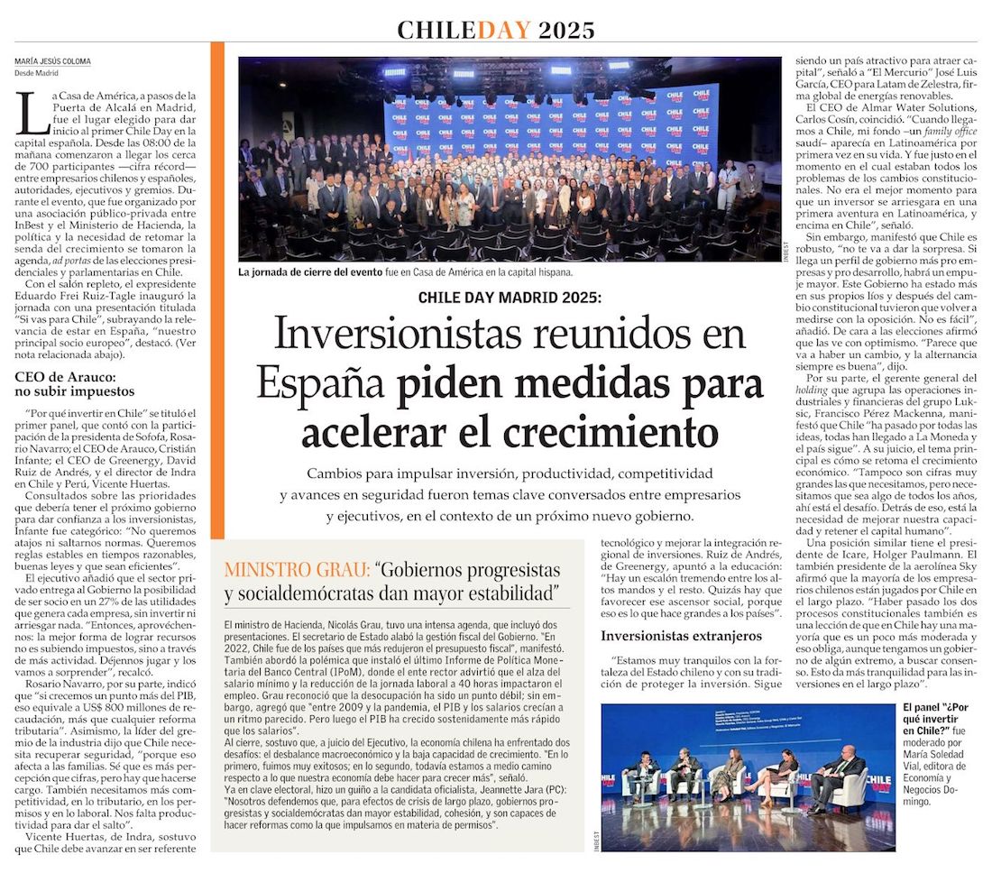 Chile Day de Madrid cerró con fuerte llamando a la política de acuerdos para volver a crecer - (Diario Financiero)