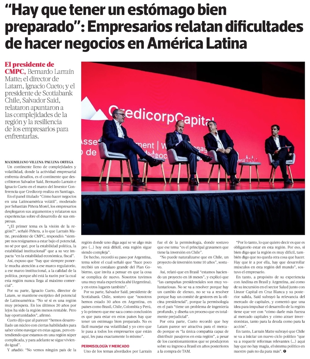 Larraín Matte, Cueto y Said analizan el momento de los negocios en América Latina - (Diario Financiero)
