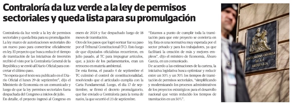 Contraloría da luz verde a etapa clave para implementar ley sobre “permisología” - (El Mercurio de Santiago)