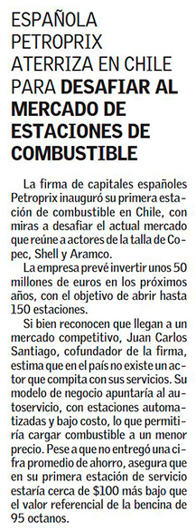 Bencinera Petroprix debutó con precio de $100 más barato por litro - (Las Últimas Noticias)