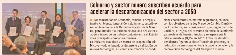 Acuerdo para descarbonizar la minería considera una hoja de ruta con foco en las mejoras regulatorias - (electromineria.cl)