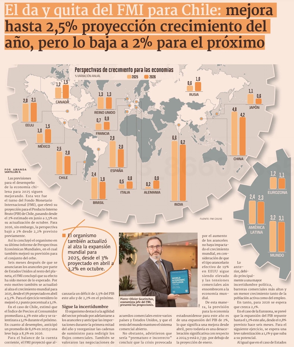 FMI ajusta al alza PIB de Chile para este año y baja cálculo de 2026 - (El Mercurio de Santiago)