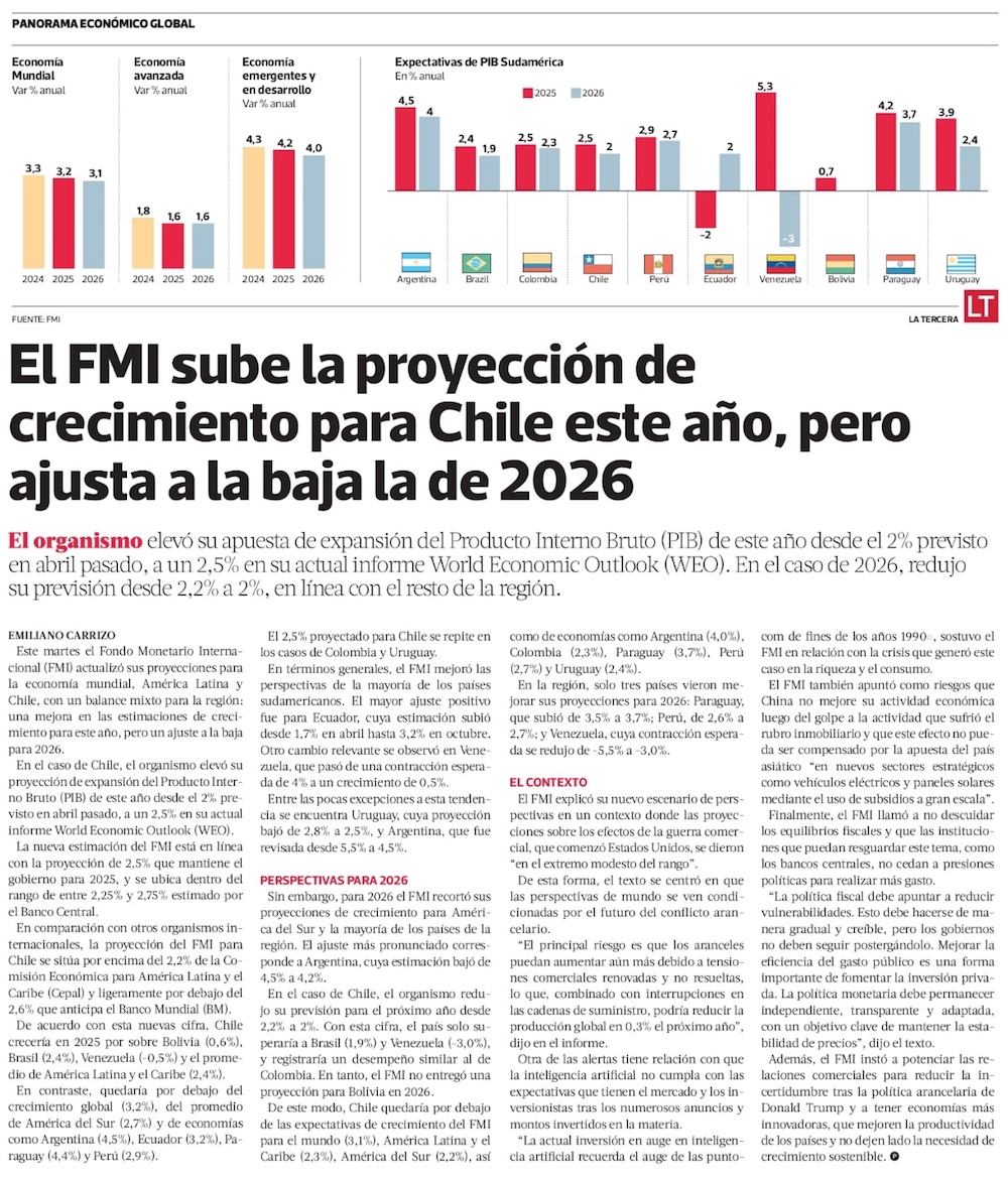 FMI ajusta al alza PIB de Chile para este año y baja cálculo de 2026 - (El Mercurio de Santiago)