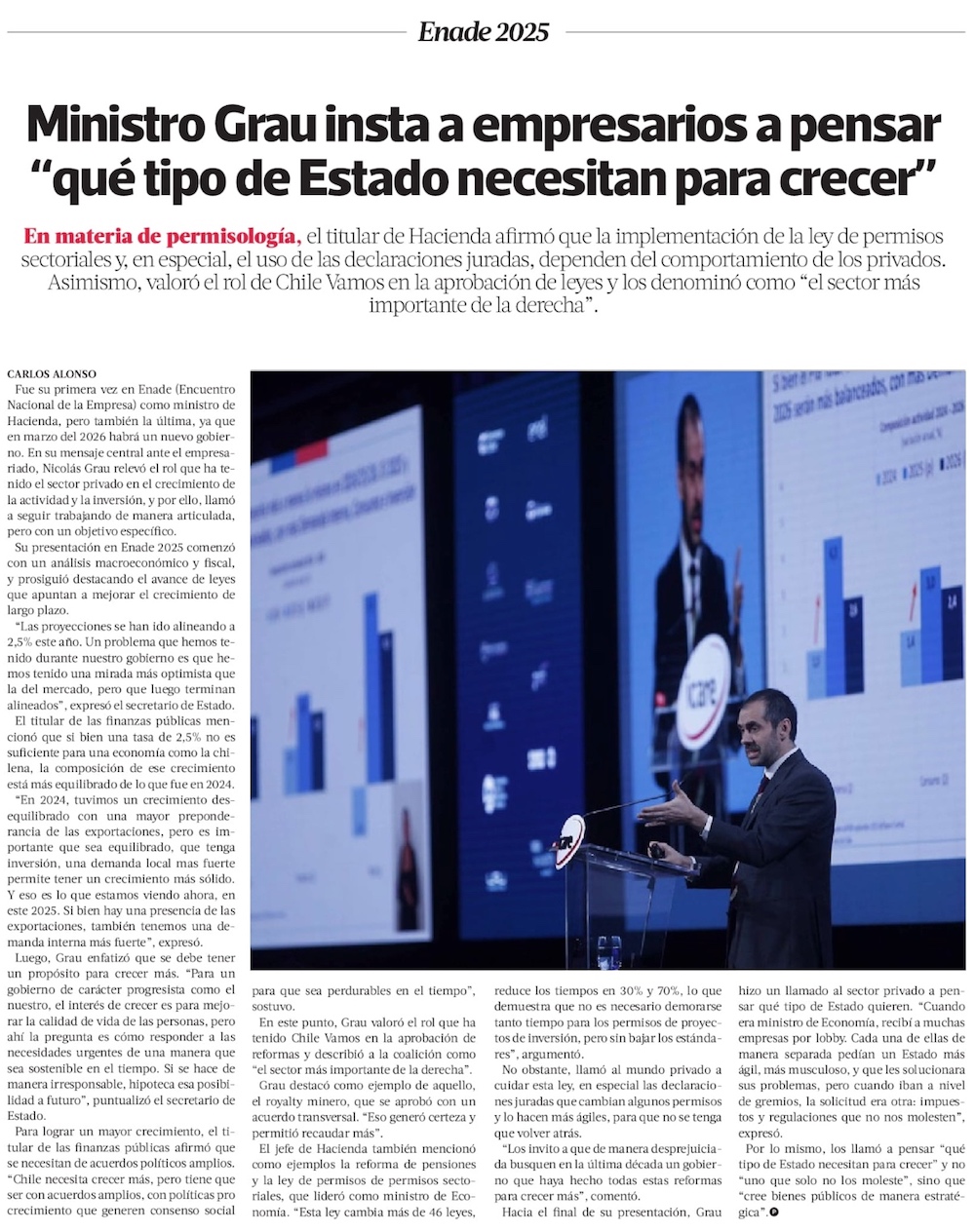 Ministro Grau les pide a empresarios “cuidar” reforma a permisos y ofrece una nueva alianza - (Diario Financiero)
