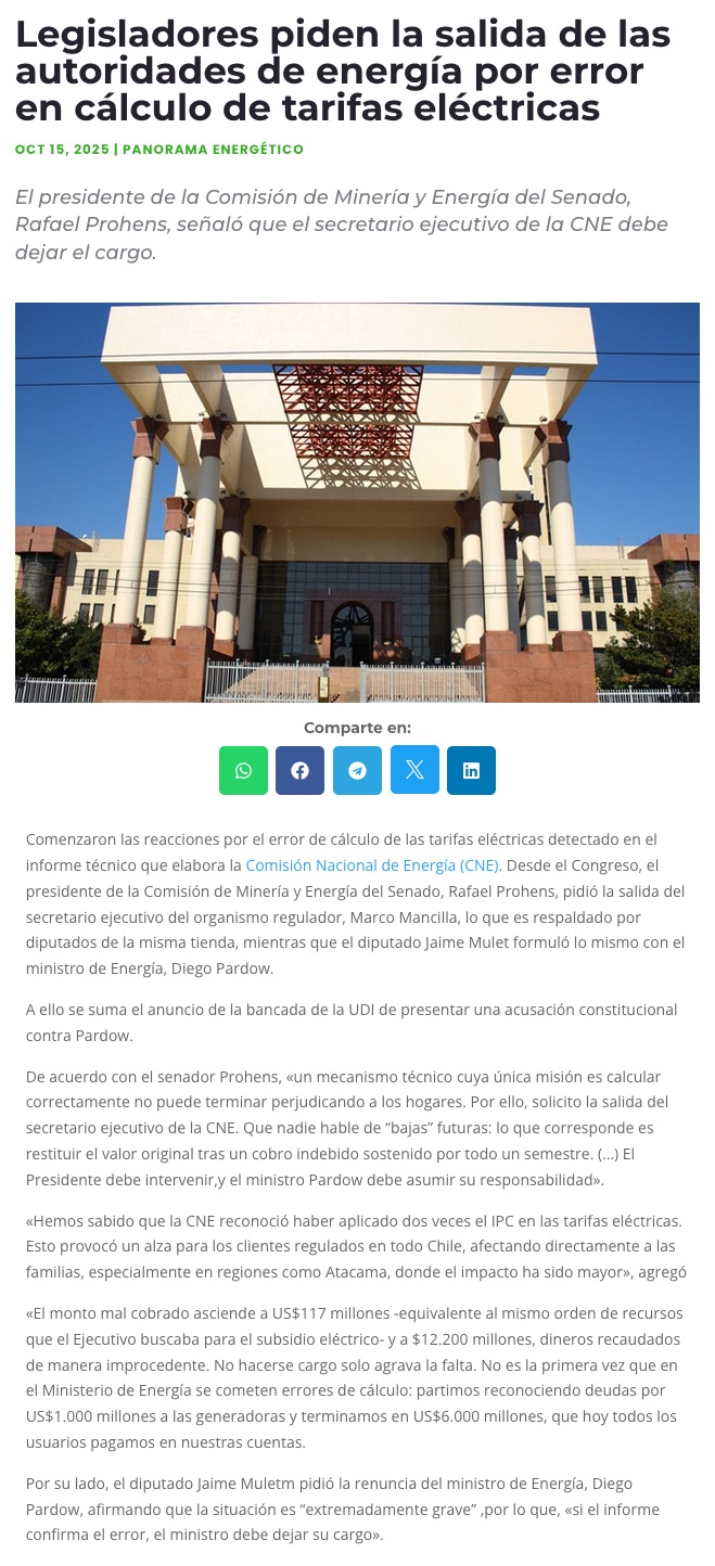 Error en cuentas de luz: UDI se anticipa con acusación contra Pardow y oficialismo presiona por responsabilidades políticas - (La Tercera)