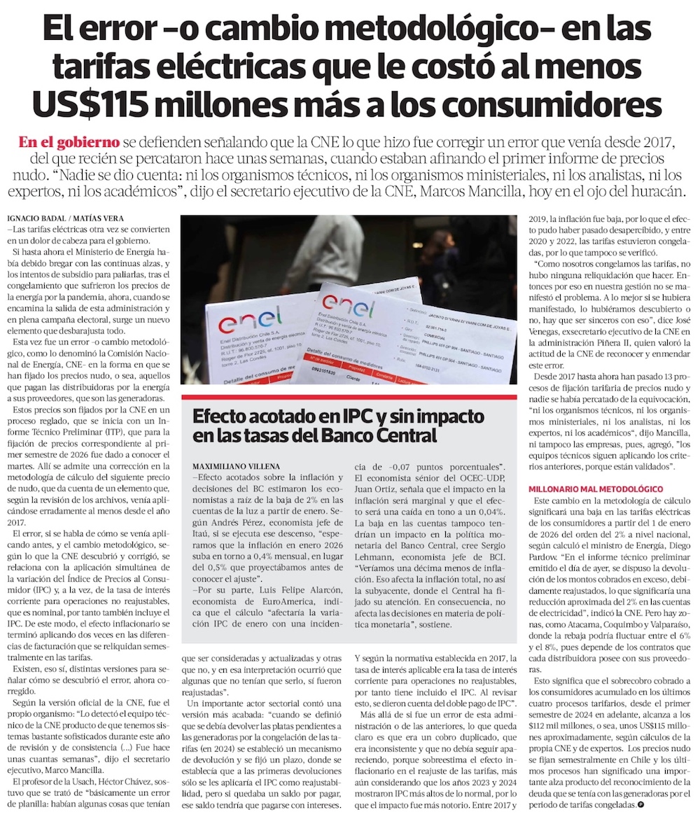 Gobierno se defiende ante nueva crisis por cuentas de la luz y mundo político presiona por salida de Pardow o timonel de la CNE - (Diario Financiero)