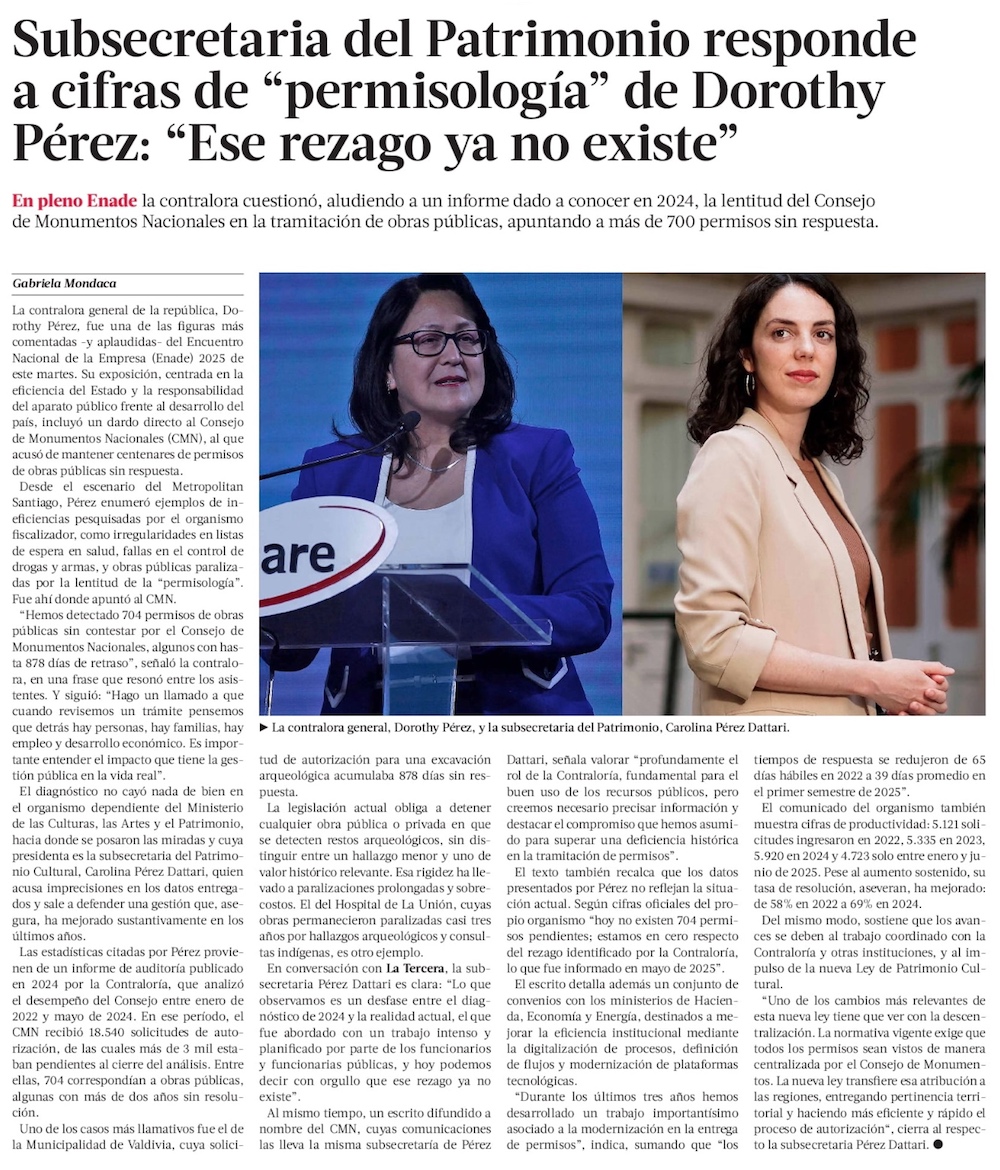 Consejo de Monumentos defiende avances en gestión de permisos tras crítica pública de Dorothy Pérez - (El Mercurio de Santiago)