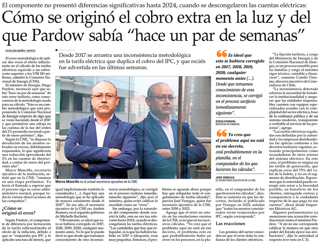 Pardow se enreda por error en cuentas de la luz y crecen las voces que piden su salida - (La Segunda)