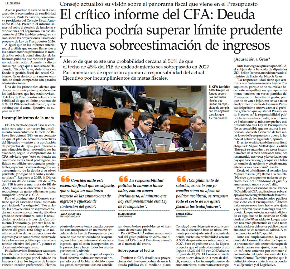 CFA pide al gobierno nuevas medidas para contener gasto este año y ve riesgo de que la deuda supere el 45% del PIB al 2027 - (Pulso)