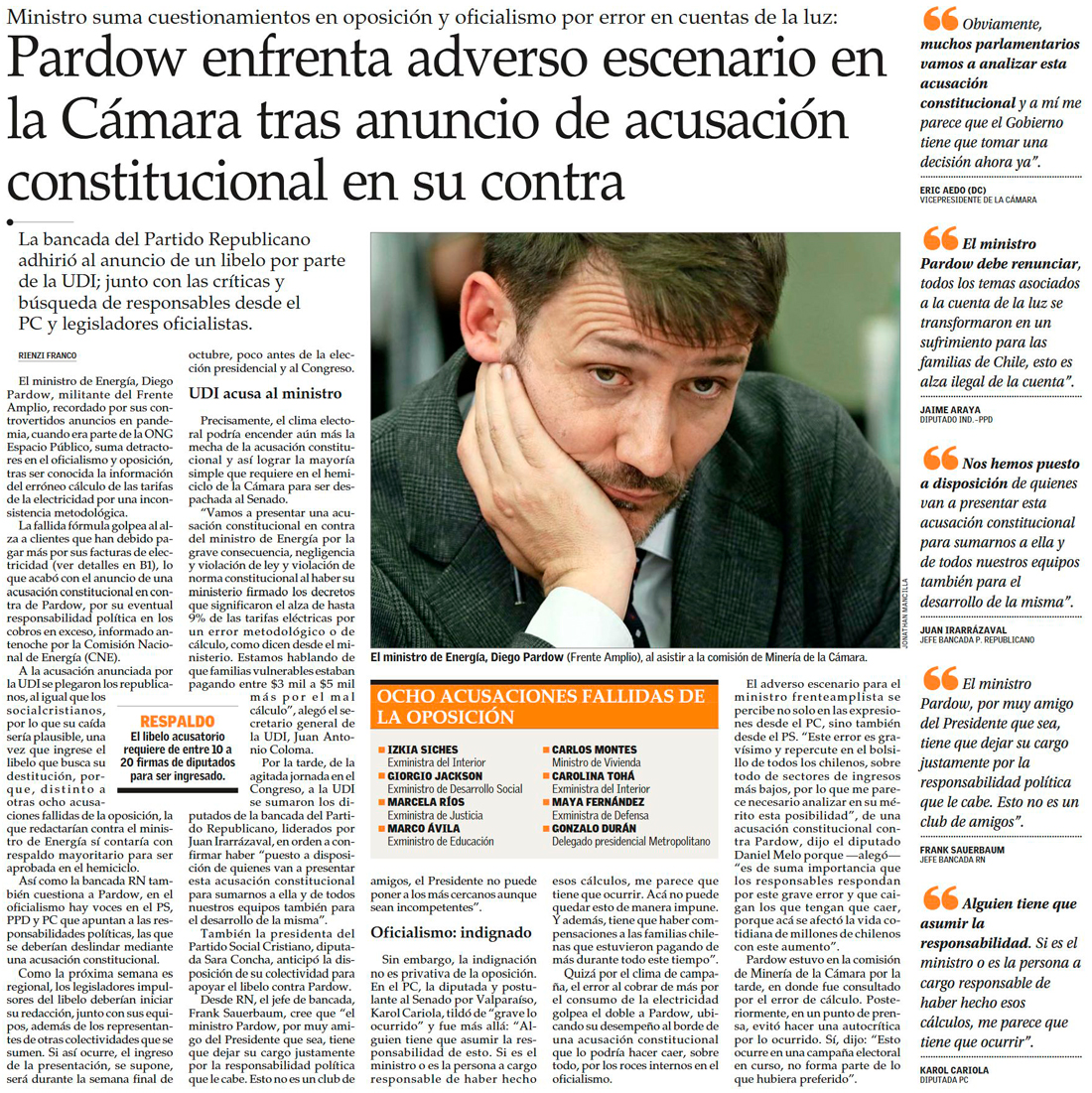 Pardow se enreda por error en cuentas de la luz y crecen las voces que piden su salida - (La Segunda)