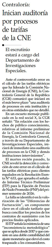 Tras remociones de Pardow y jefe de la CNE, Gobierno busca adelantar rebaja tarifaria - (El Mercurio de Santiago)