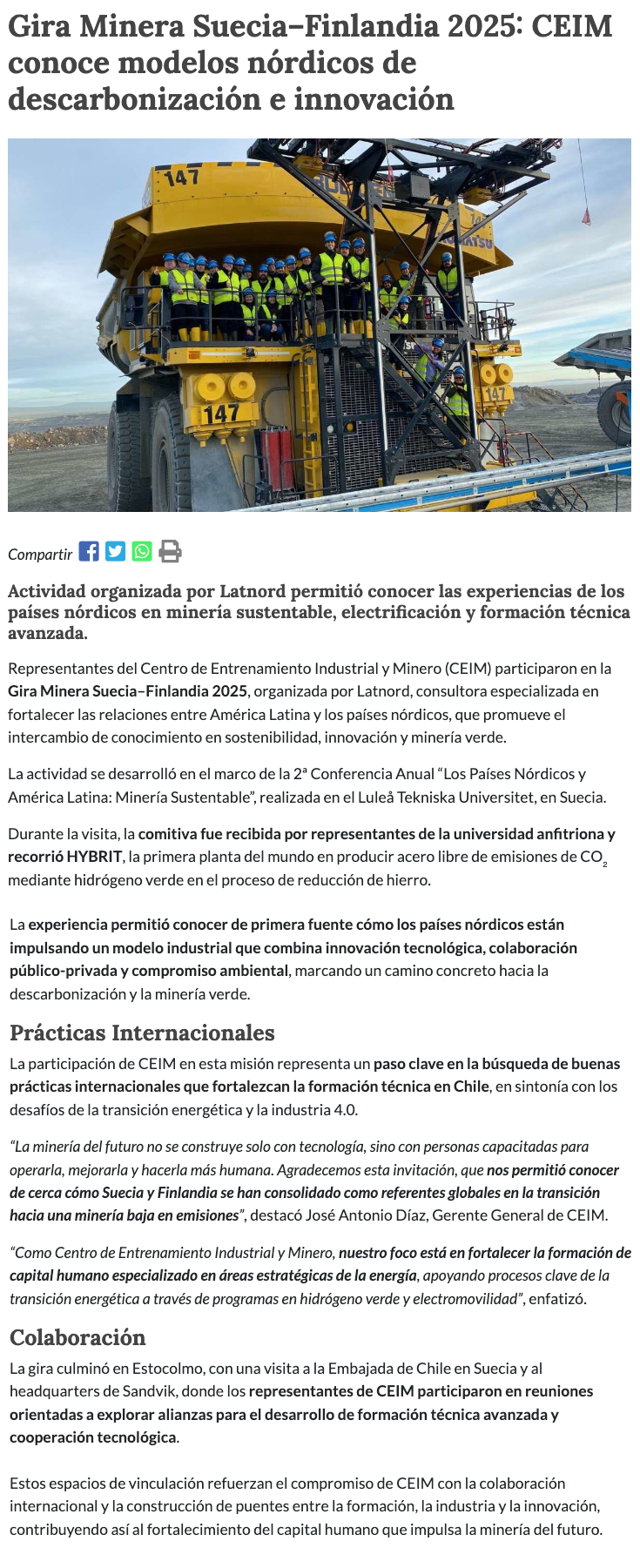 Gira Minera Suecia–Finlandia 2025: CEIM conoce modelos nórdicos de descarbonización e innovación - (redimin)