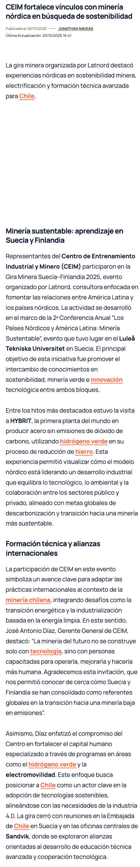 Gira Minera Suecia–Finlandia 2025: CEIM conoce modelos nórdicos de descarbonización e innovación - (reporteminero)