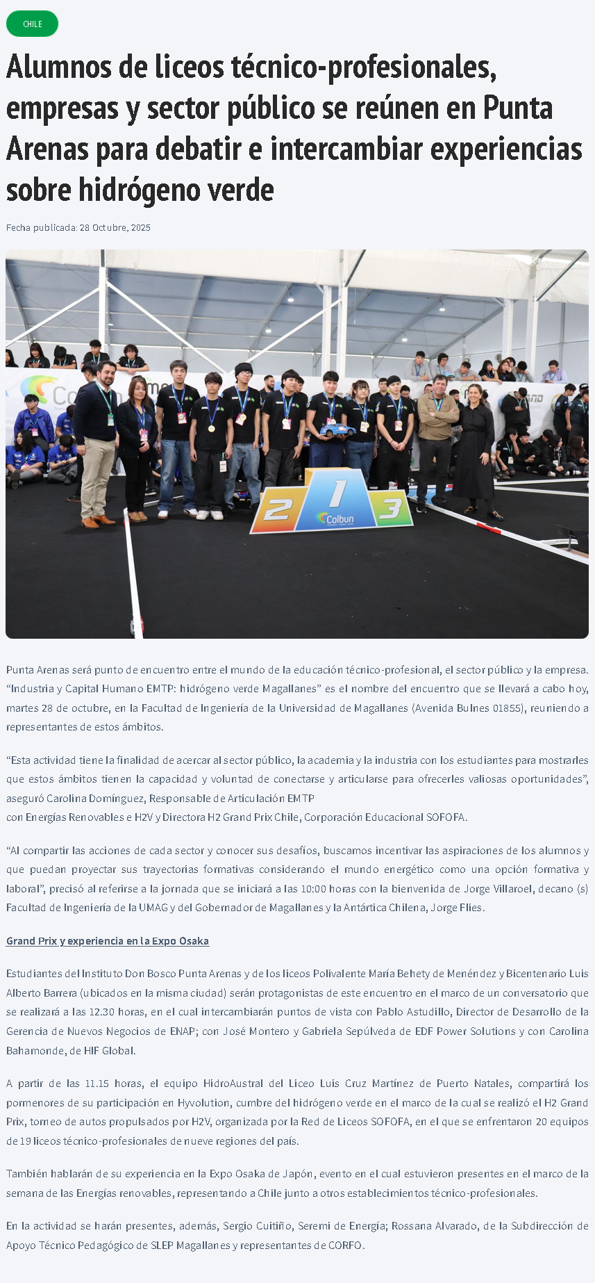 Alumnos de liceos técnico-profesionales, empresas y sector público se reúnen para debatir sobre hidrógeno verde - (El Pingüino)