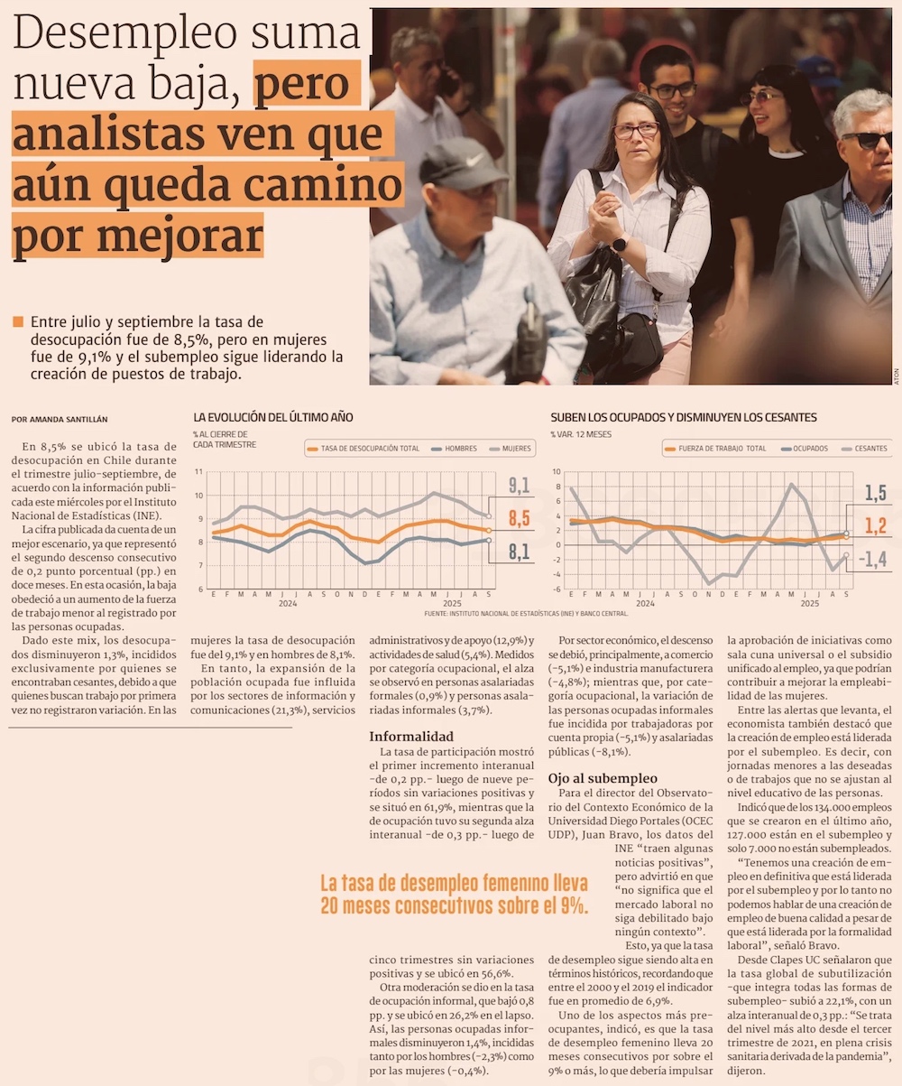 Desocupación retrocede, pero destrucción de empleo formal levanta alerta en mercado laboral en “extremo débil” - (El Mercurio de Santiago)
