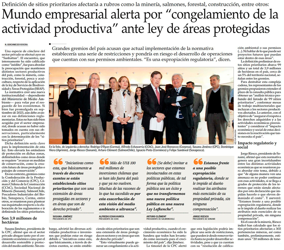 “Es una expropiación regulatoria”: gremios acusan al Gobierno de no escuchar por impacto de Ley SBAP - (Diario Financiero)