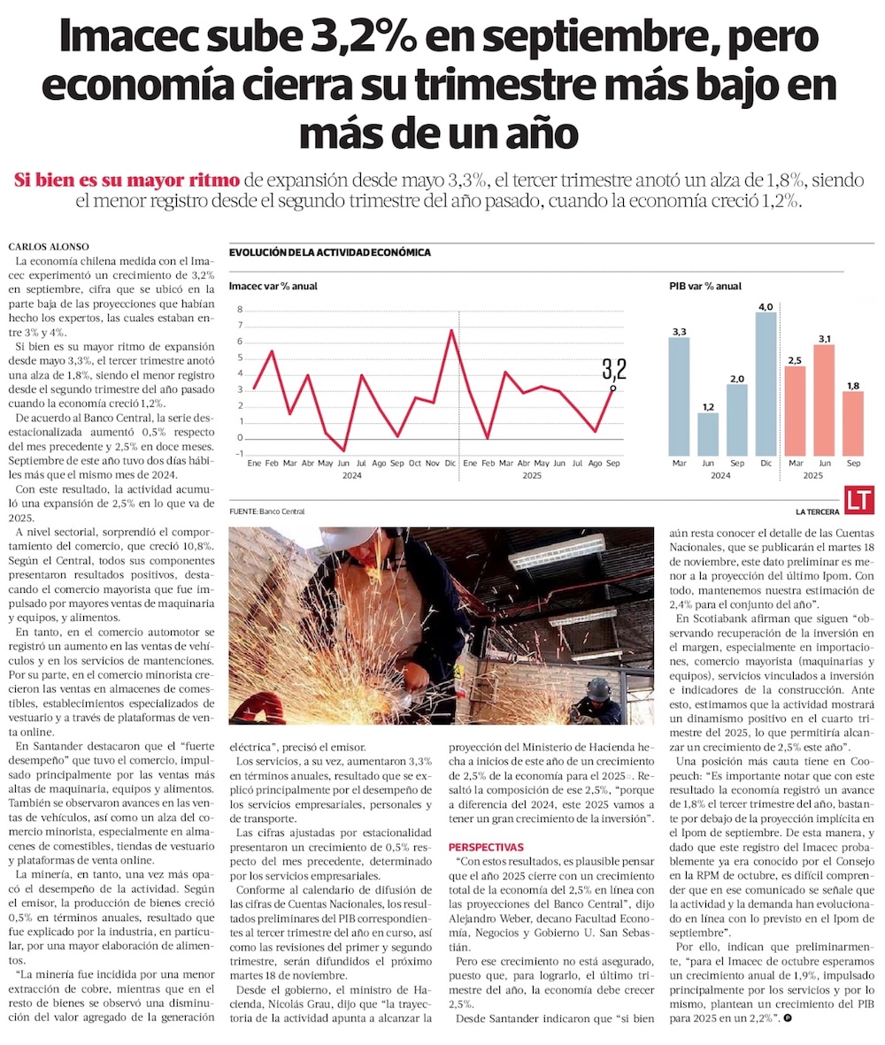 PIB se aproxima a cerrar el año con una alza cercana a 2,5% y el mercado ya se prepara para 2026 - (Diario Financiero)