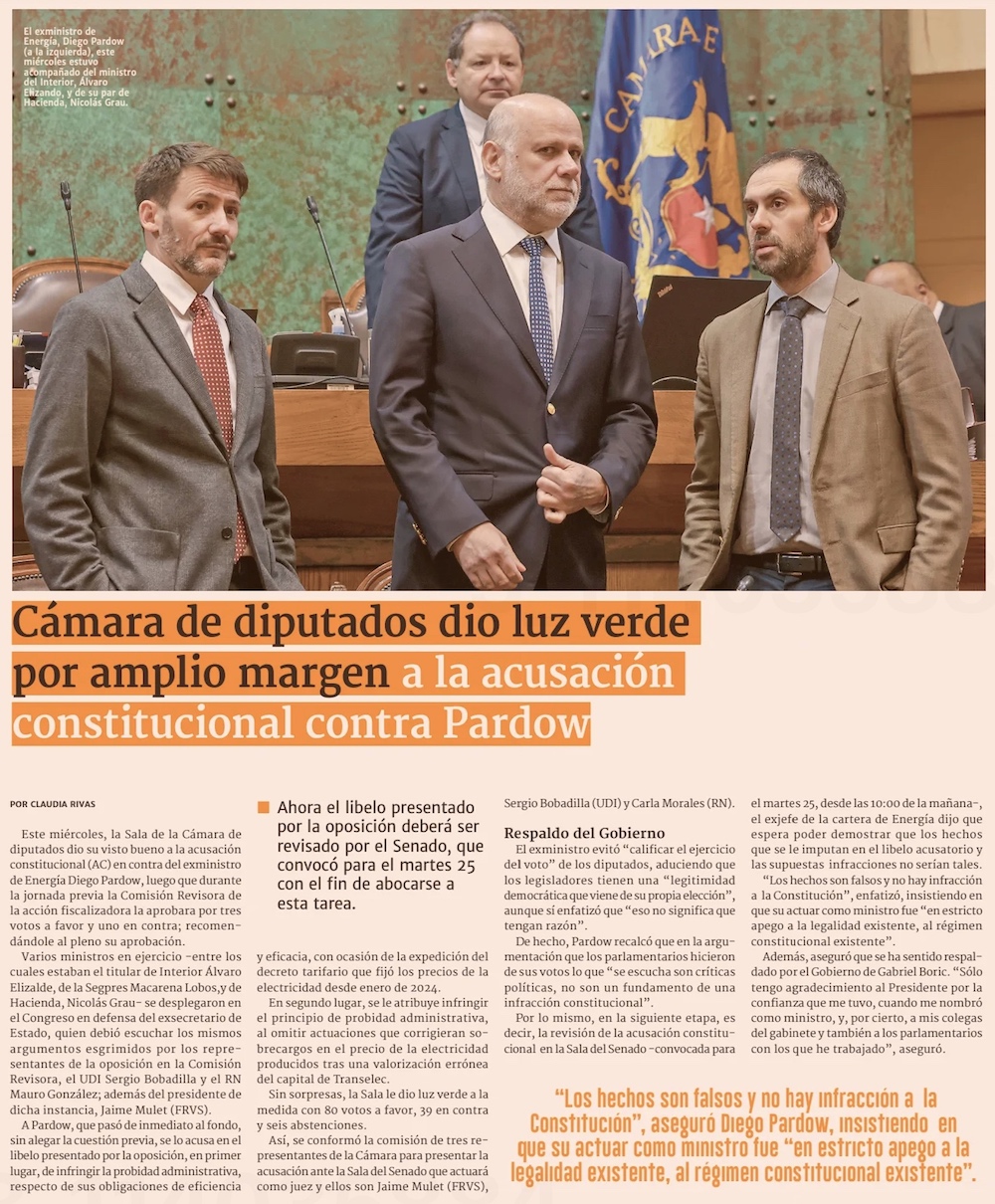 Cámara aprueba acusación contra Pardow y su destino queda en manos del Senado - (La Tercera)
