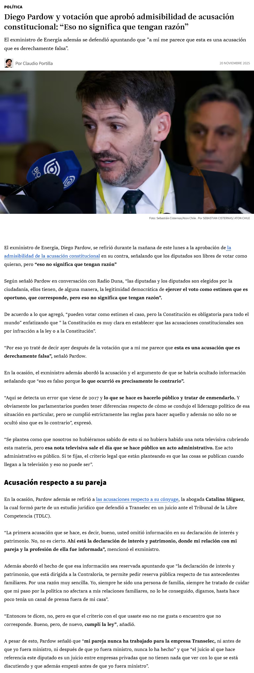 Exministro Diego Pardow por admisibilidad de acusación constitucional en su contra: “Eso no significa que tengan razón” - (cnnchile.com)