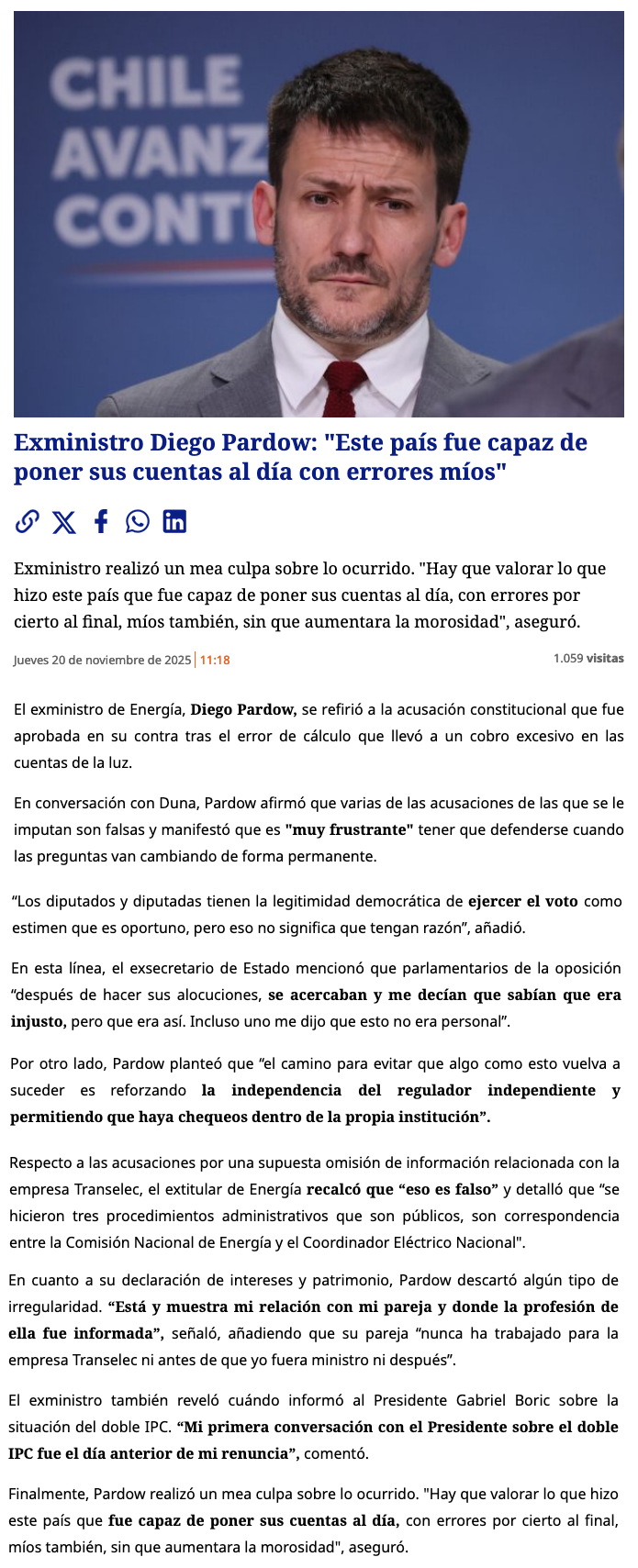 Diego Pardow y aprobación de admisibilidad de AC: “Eso no significa que tengan razón” y “es una acusación falsa” - (eldinamo)