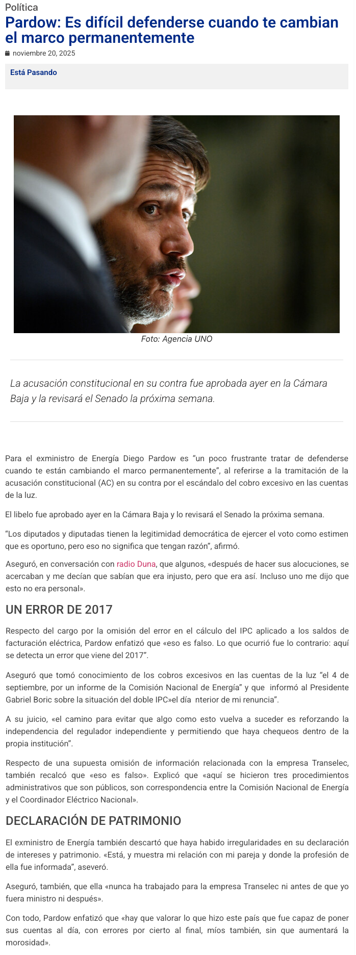 Exministro Diego Pardow por admisibilidad de acusación constitucional en su contra: “Eso no significa que tengan razón” - (cnnchile.com)