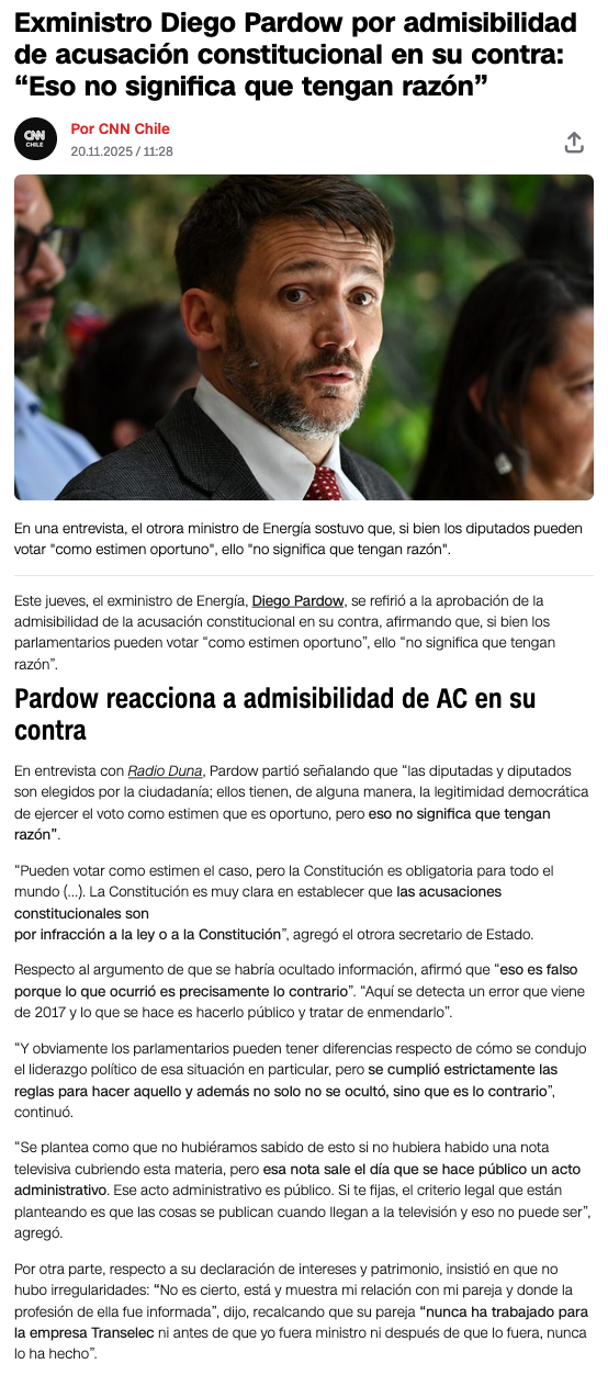 Diego Pardow y aprobación de admisibilidad de AC: “Eso no significa que tengan razón” y “es una acusación falsa” - (eldinamo)